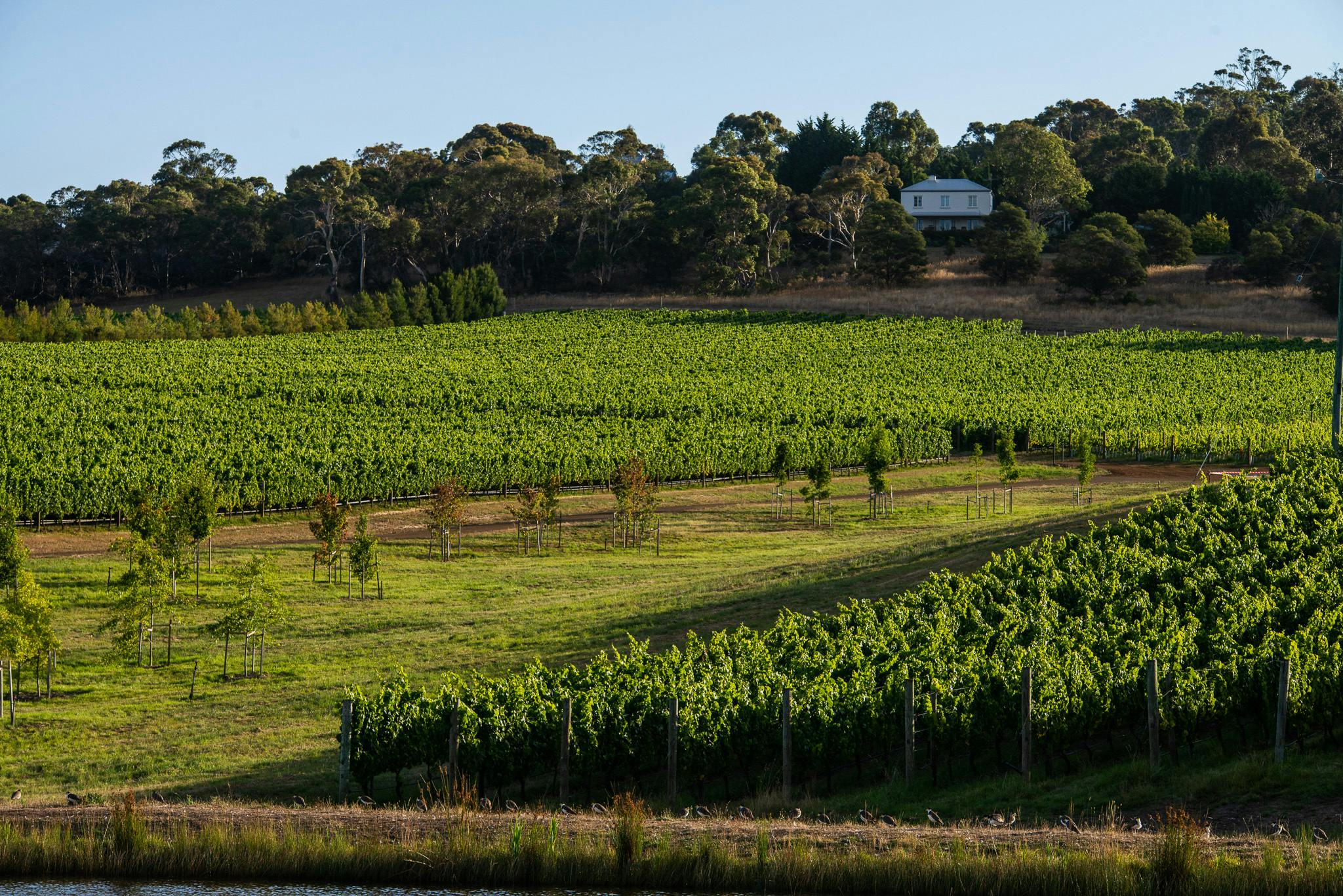 The moment we drove through the gate it was love at first sight. 20 hectares of mature Chardonnay and Pinot Noir vines planted on a long even slope, with lean soils, forests above and water below and great vineyard exposure. Fantastic.